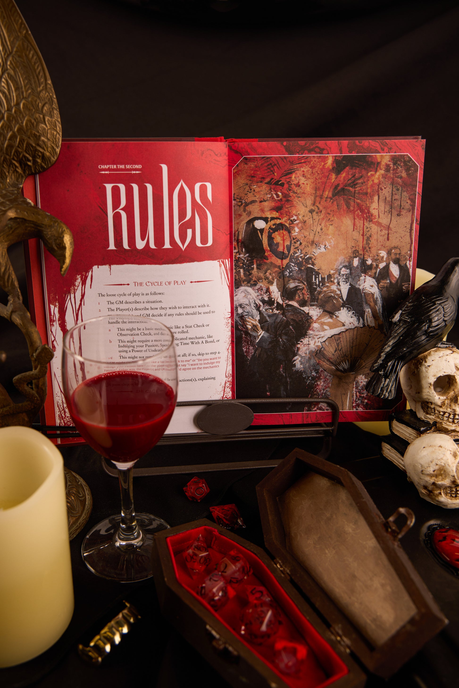 Paint The Town Red is a sad vampire RPG from SoulMuppet Publishing about depression, partying and falling in love, and explores themes of trauma, vice and loneliness.